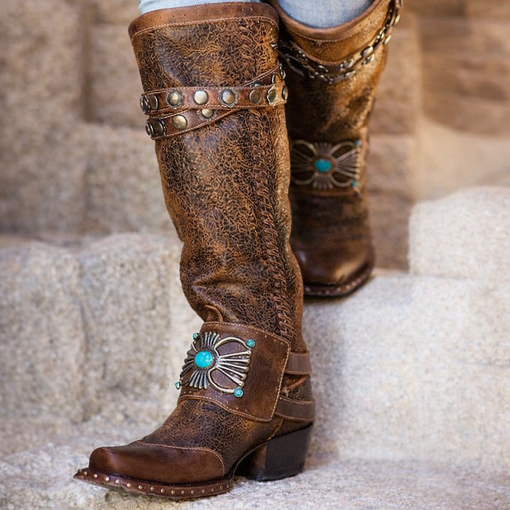 Step confidently in Orthopedic Balance Rivet Boots, designed for women seeking both style and orthopedic support. Crafted with premium materials and traditional artistry, these boots deliver long-lasting durability and comfort for daily wear. The thick heel provides enhanced stability, while the bold rivet accents and decorative turquoise details add a touch of sophistication to every step. Engineered by Orthopedic Balance, these boots seamlessly blend fashion with supportive features, making them perfect for extended use at work or on the go.