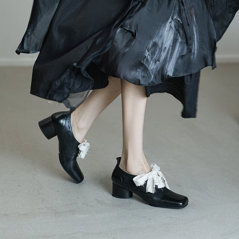 Appearance: These shoes feature a charming vintage-inspired design with a rounded square toe, elegant bow tie accent, and low block heel. Available in multiple shades like white, red, green, and black, they pair well with both casual and dressy outfits.