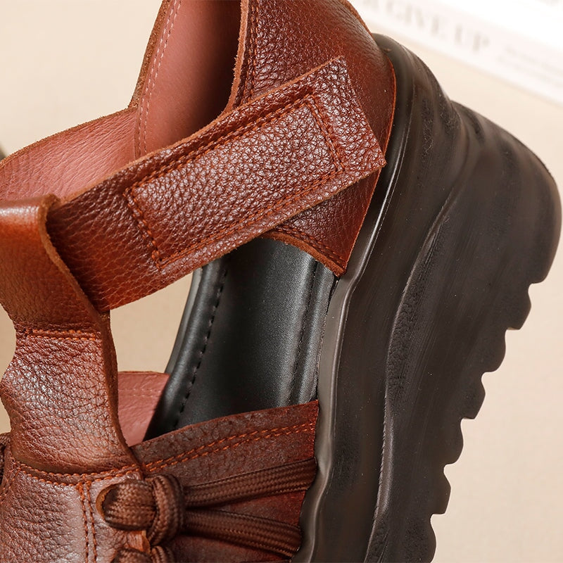 Appearance: These sandals feature a retro fisherman-style design with interwoven straps and a chunky platform sole. Available in earthy tones like brown and black, they blend vintage charm with a bold, modern silhouette.